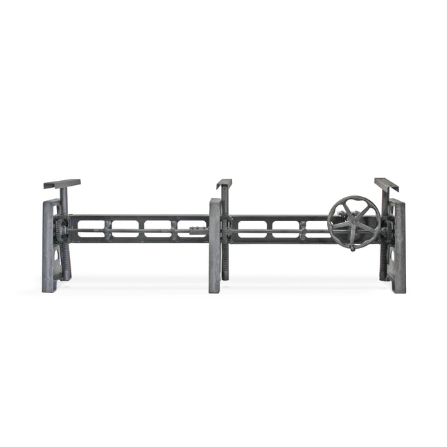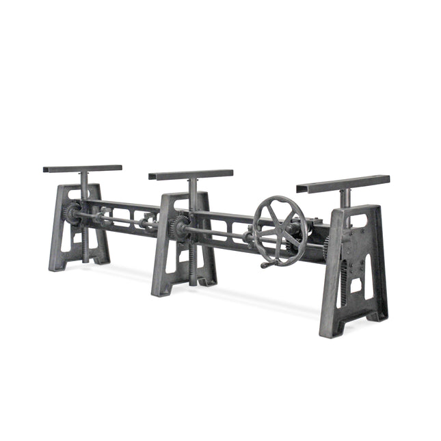 Each design draws from factory workbench heritage, featuring heavy cast iron and steel construction with functional mechanical elements like hand cranks and casters. Whether you need a single conference table or multiple rectangular conference tables for a large venue, each piece maintains the same commitment to authentic industrial craftsmanship.