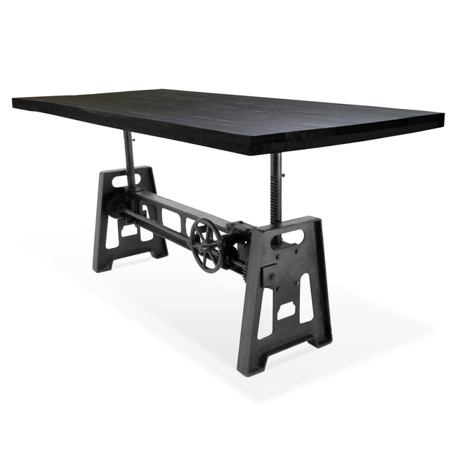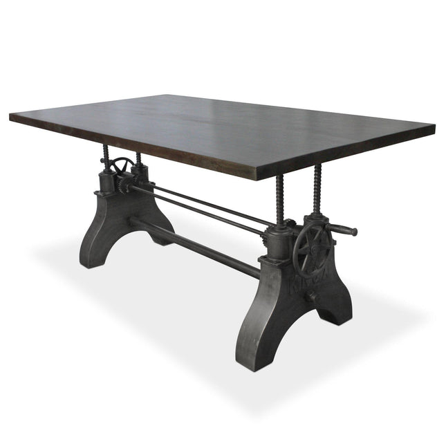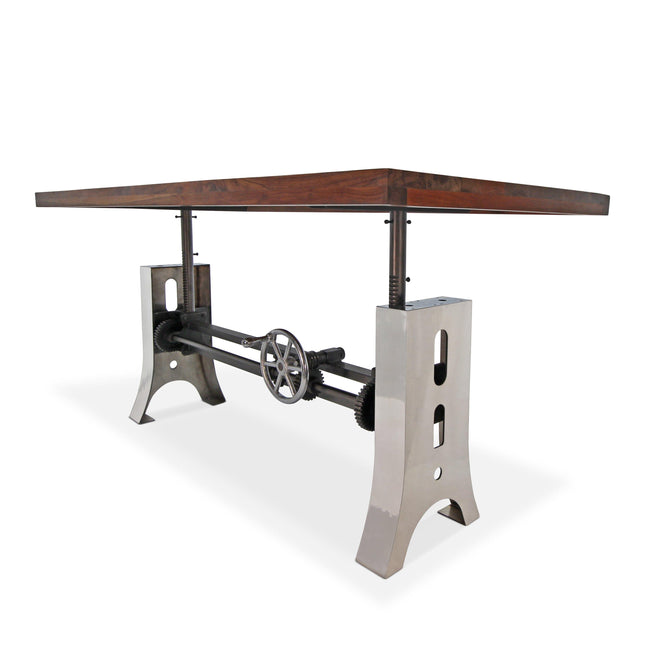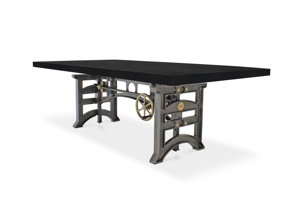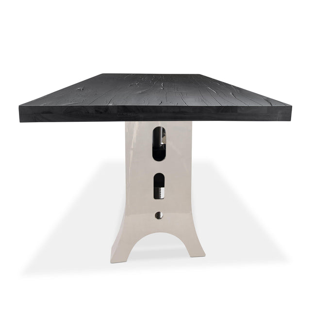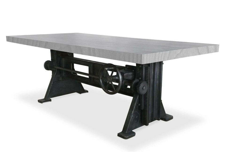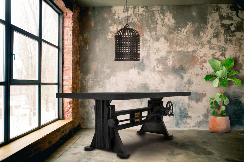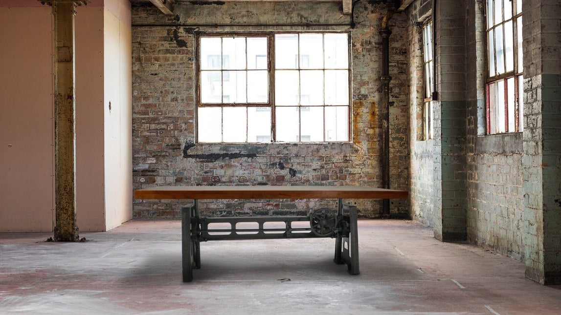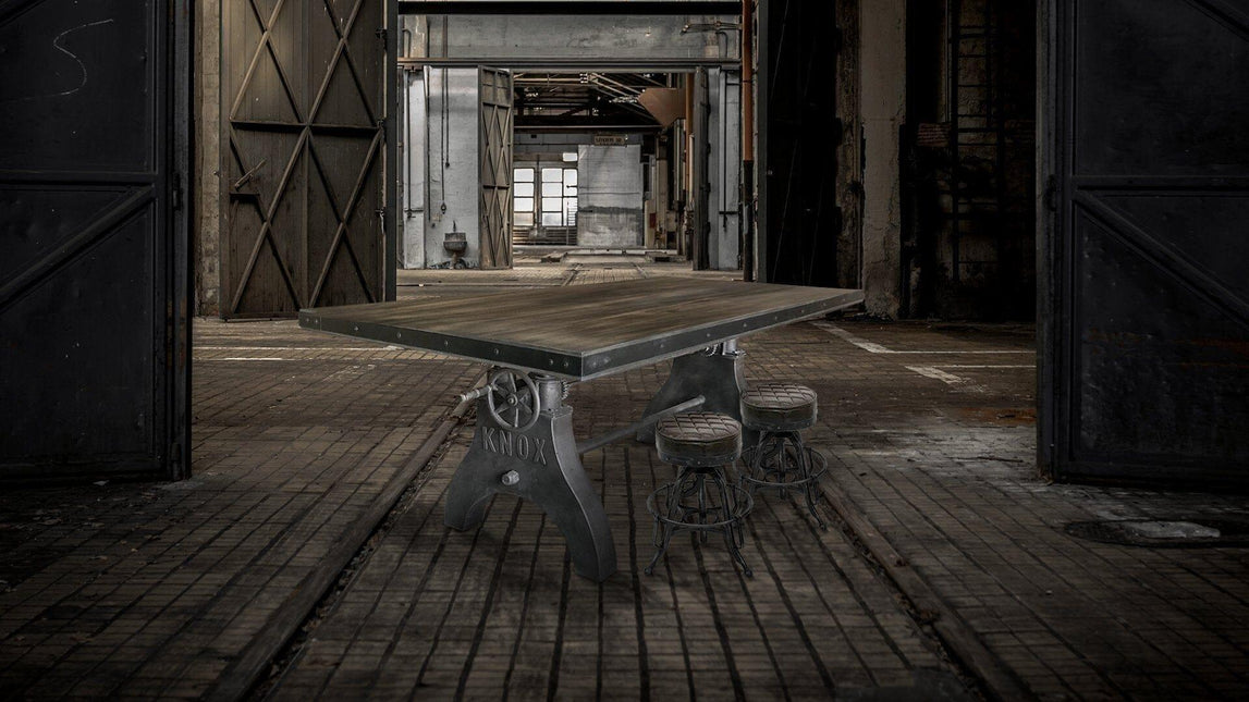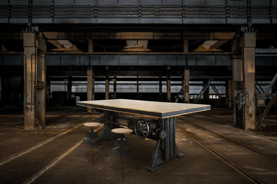 Our industrial dining collection emphasizes both bold form and practical functionality, with many tables featuring adjustable height cranks that allow you to customize the height to your exact needs, showcasing authentic industrial design elements.