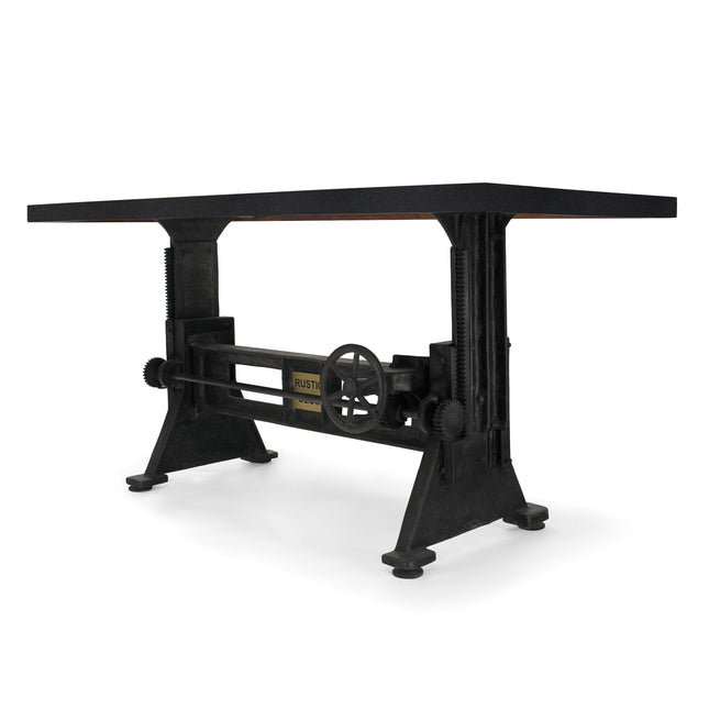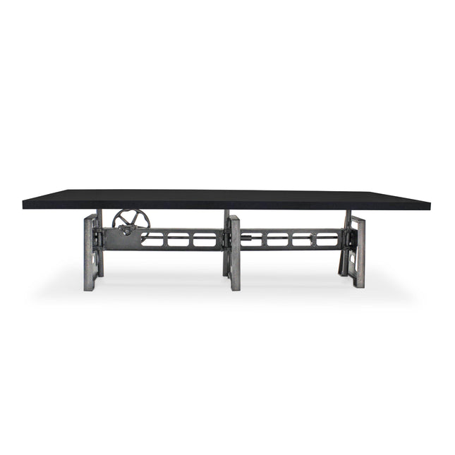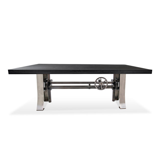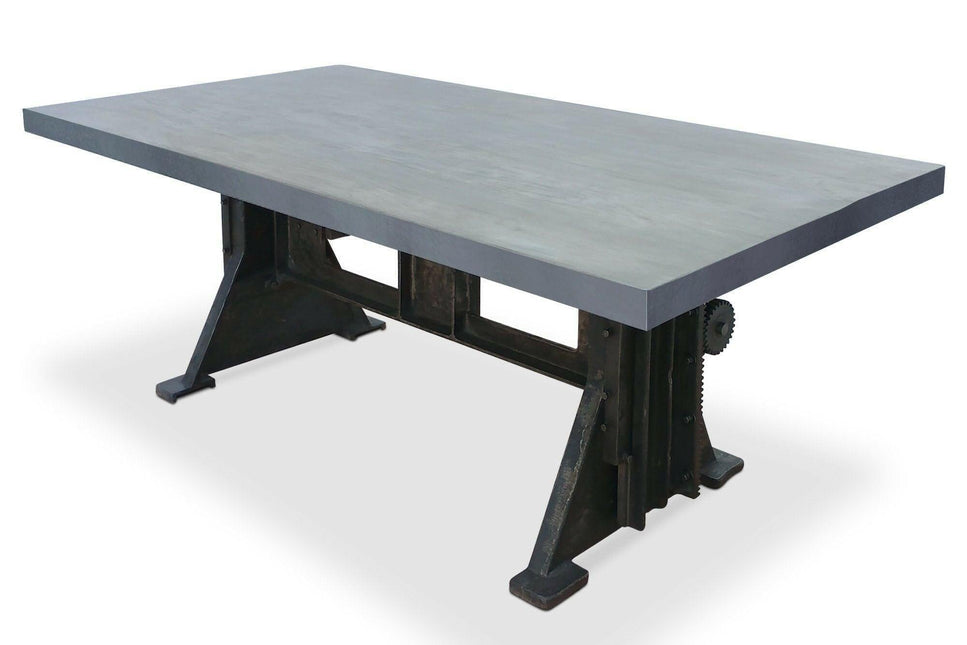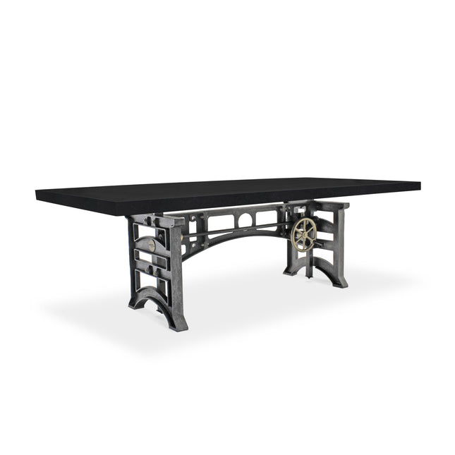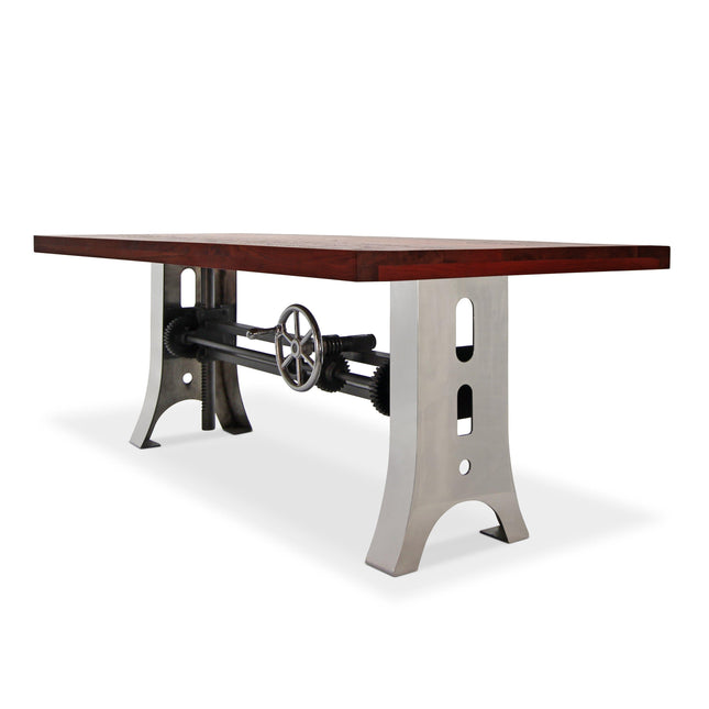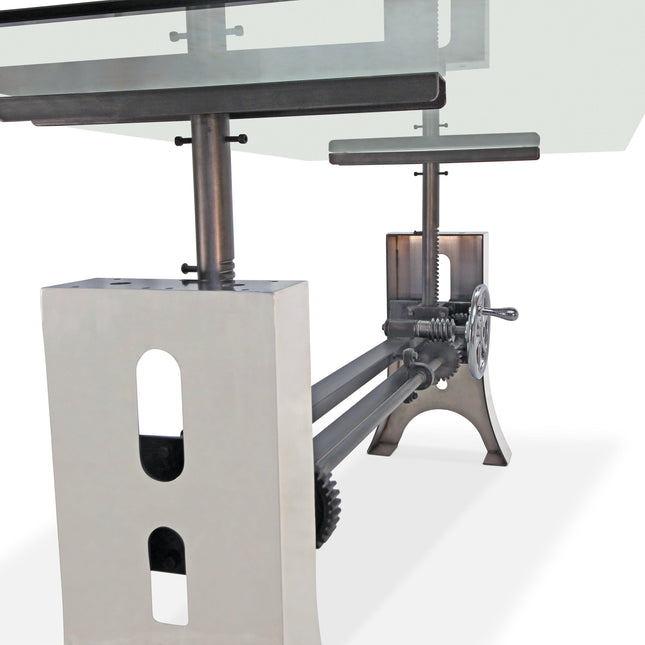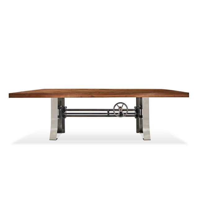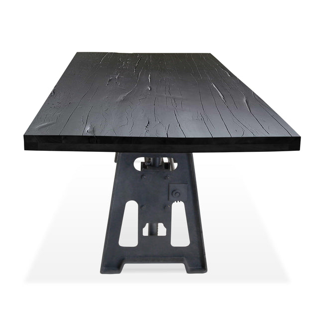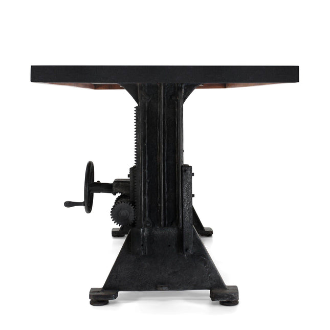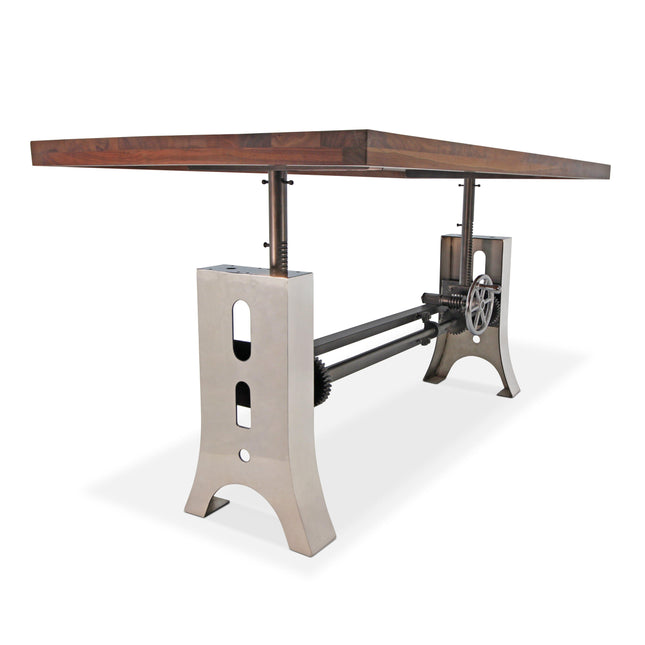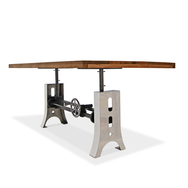 Our industrial dining collection emphasizes both bold form and practical functionality, with many tables featuring adjustable height cranks that allow you to customize the height to your exact needs, showcasing authentic industrial design elements.