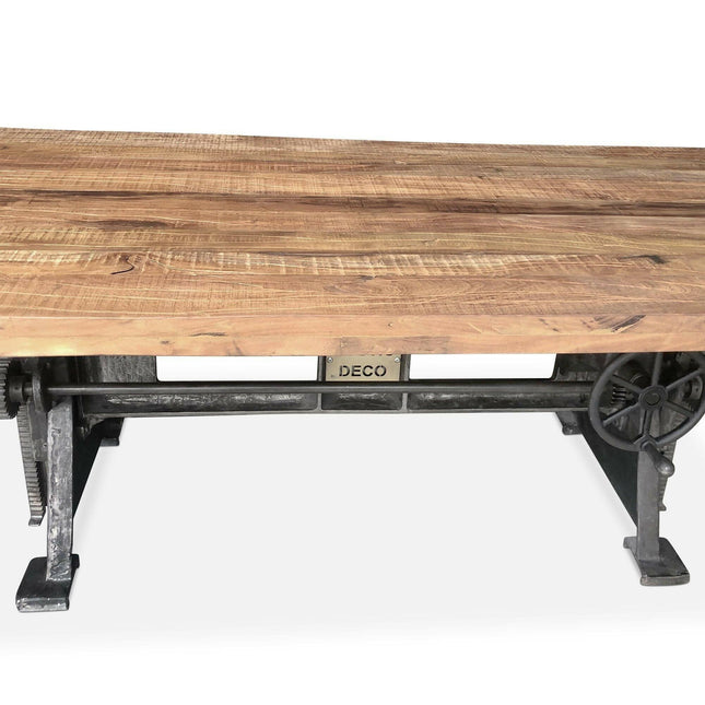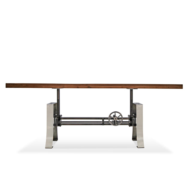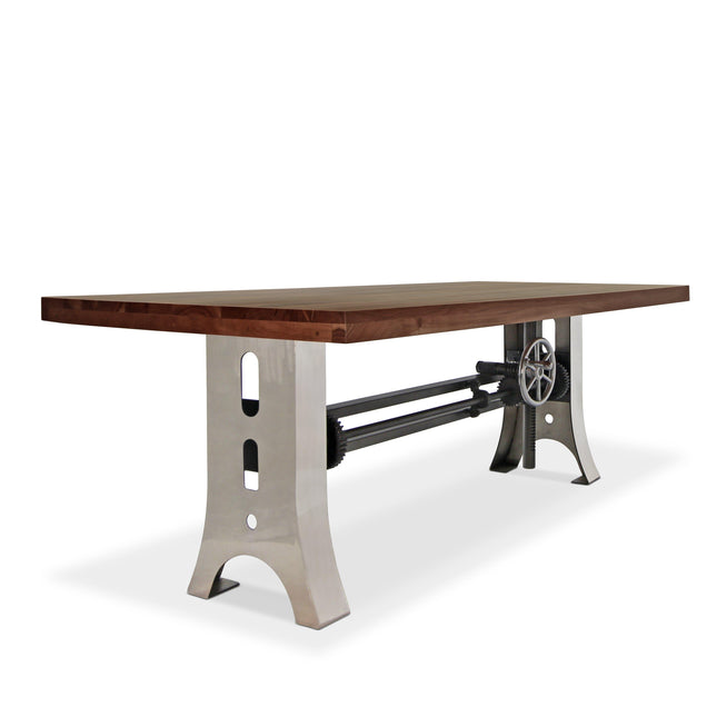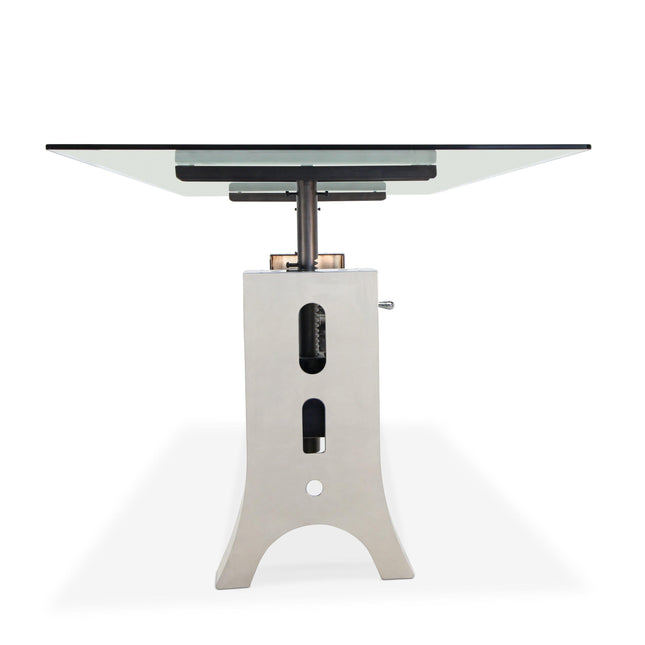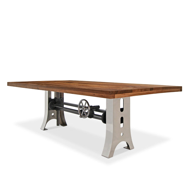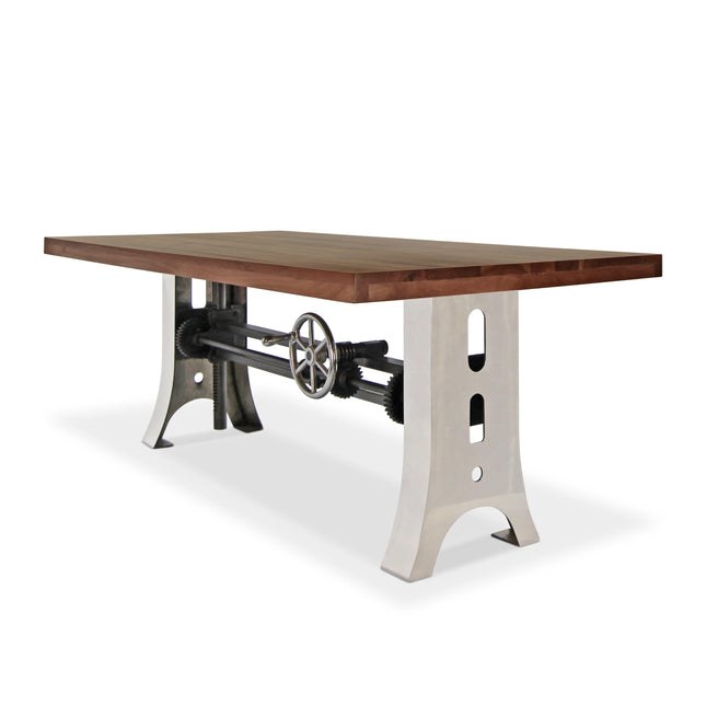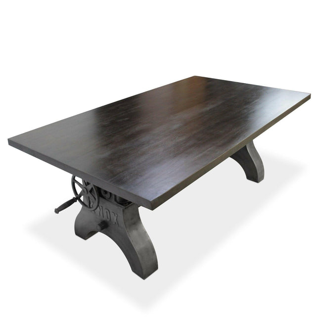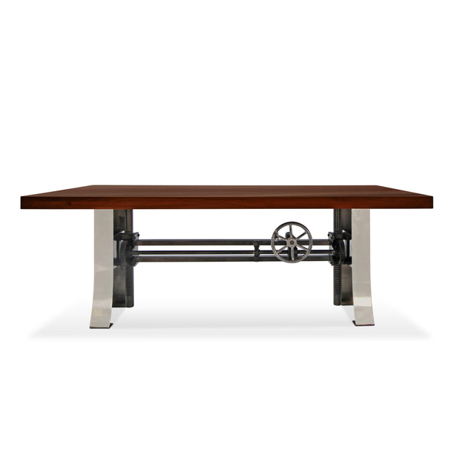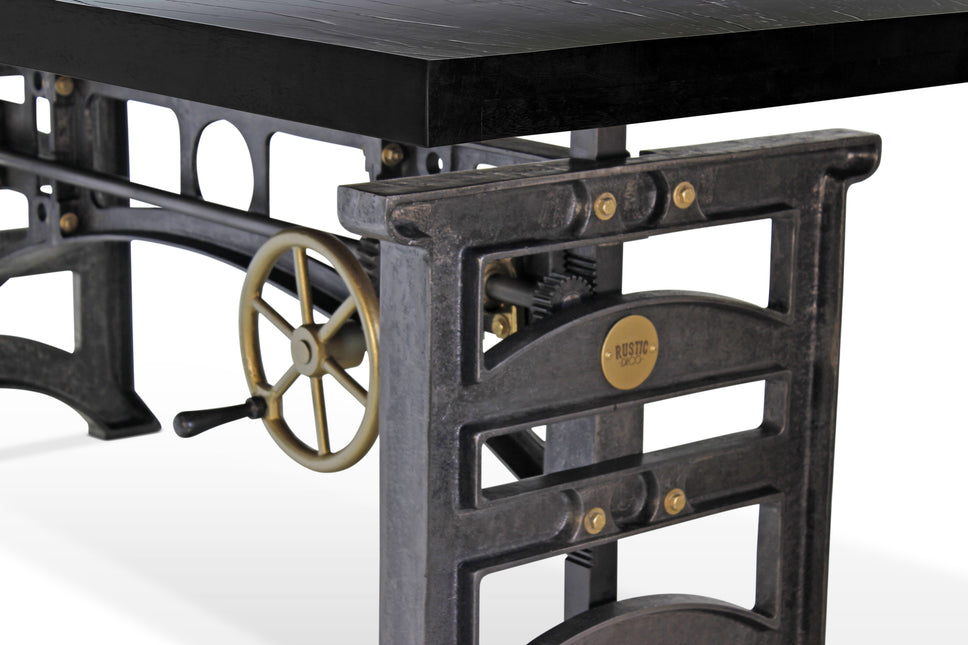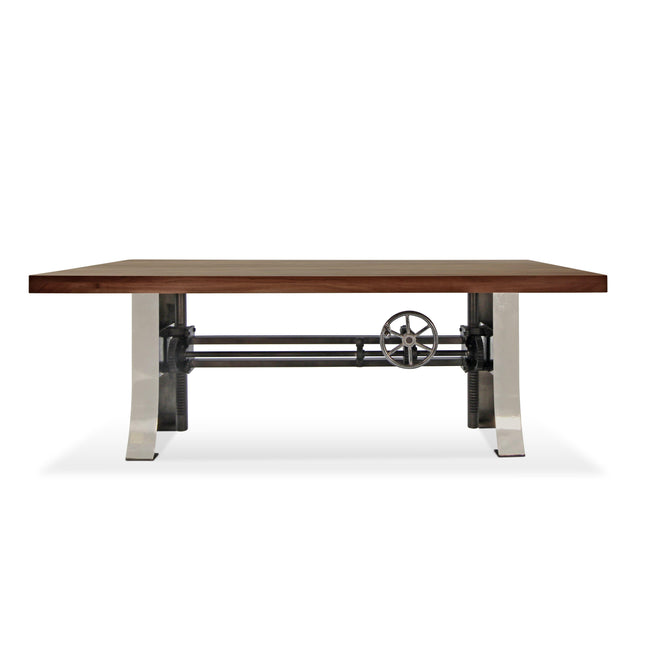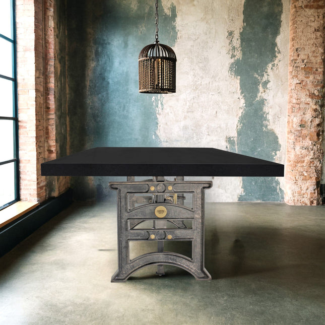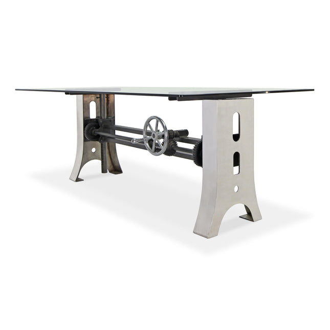 Our industrial dining collection emphasizes both bold form and practical functionality, with many tables featuring adjustable height cranks that allow you to customize the height to your exact needs, showcasing authentic industrial design elements.