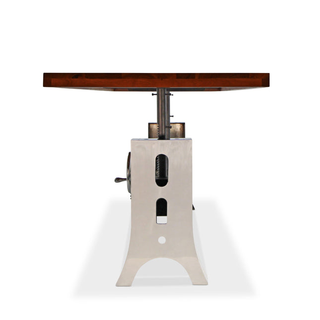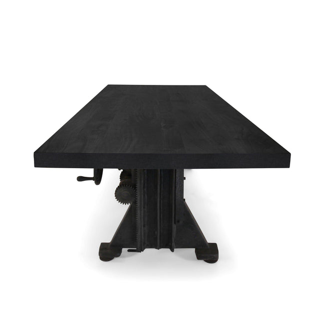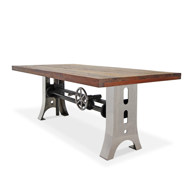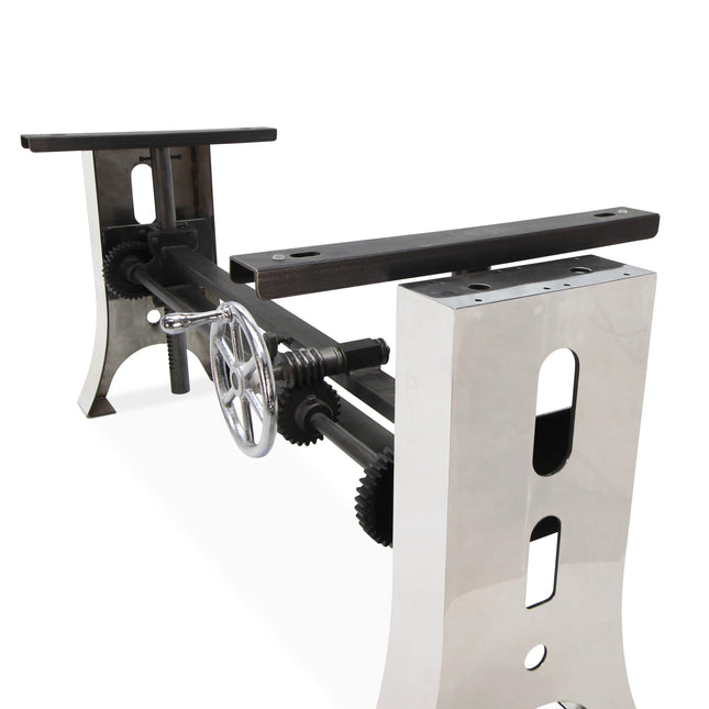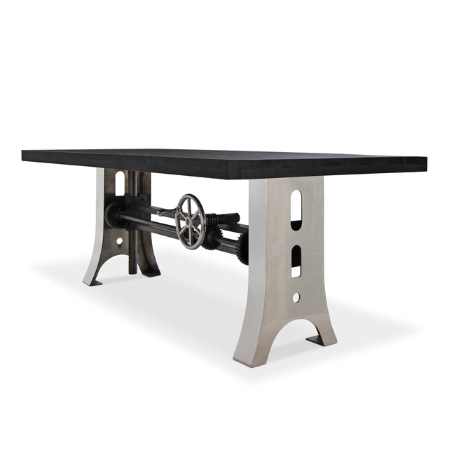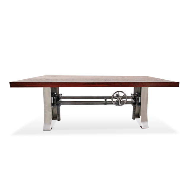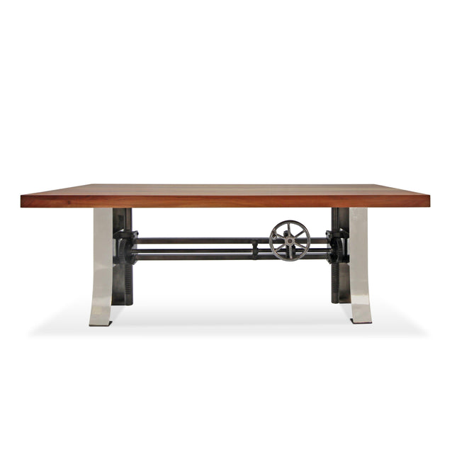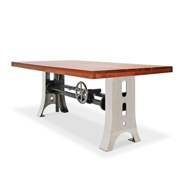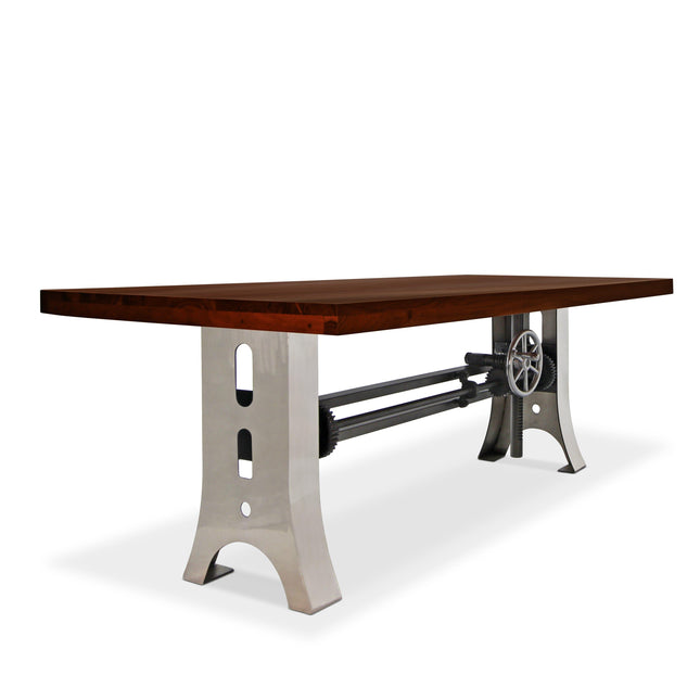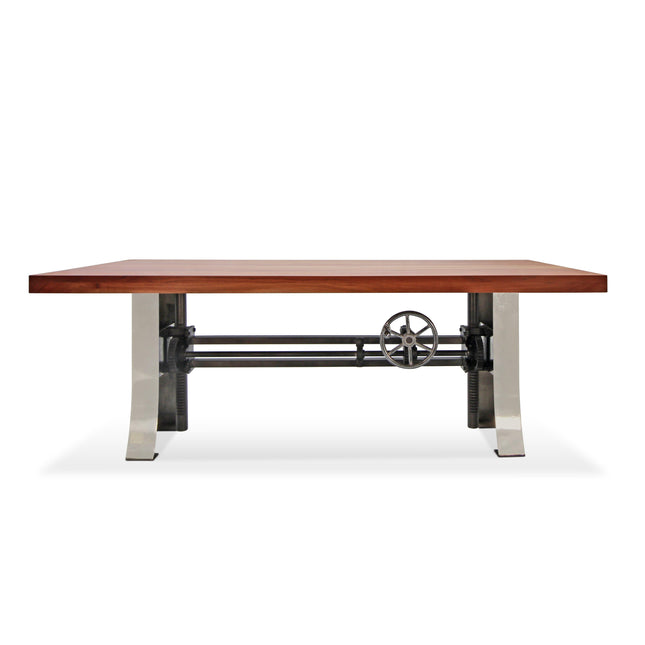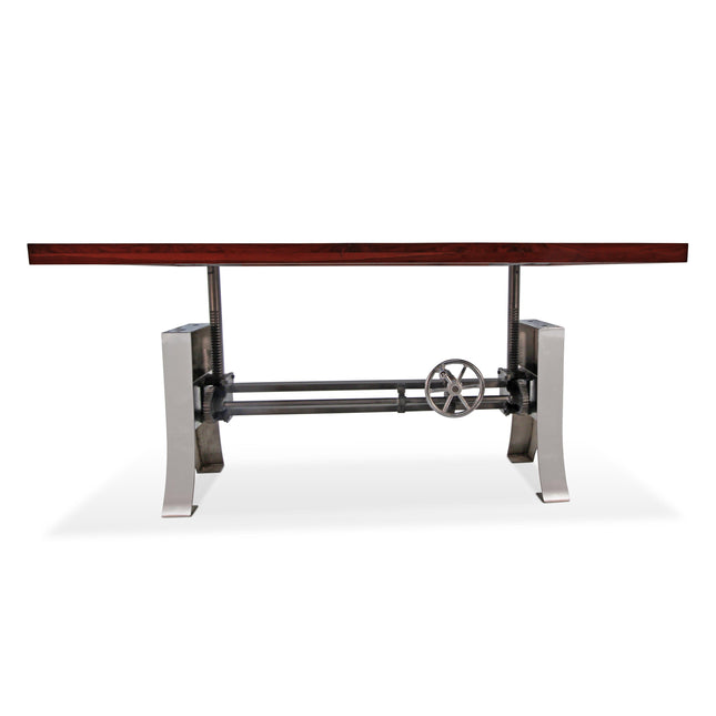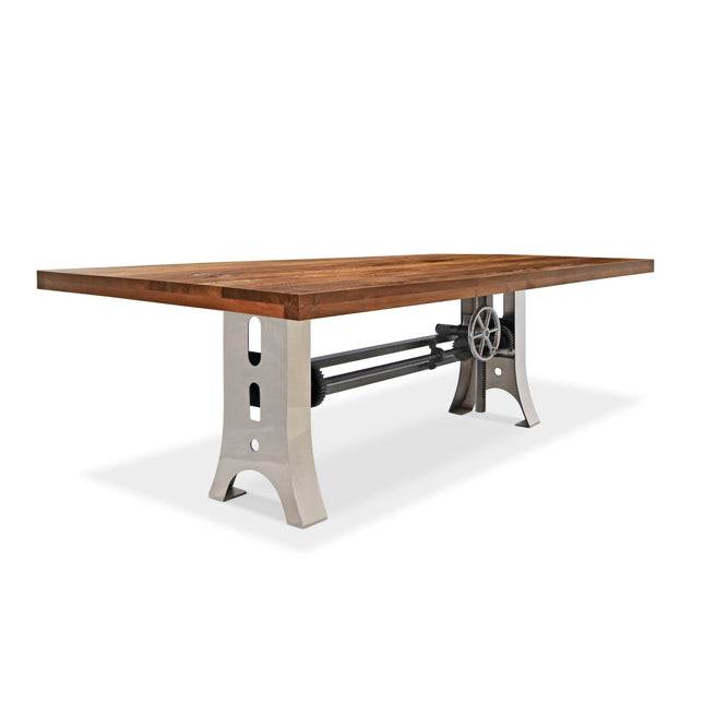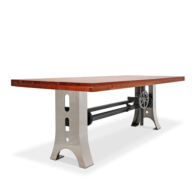 Our industrial dining collection emphasizes both bold form and practical functionality, with many tables featuring adjustable height cranks that allow you to customize the height to your exact needs, showcasing authentic industrial design elements.