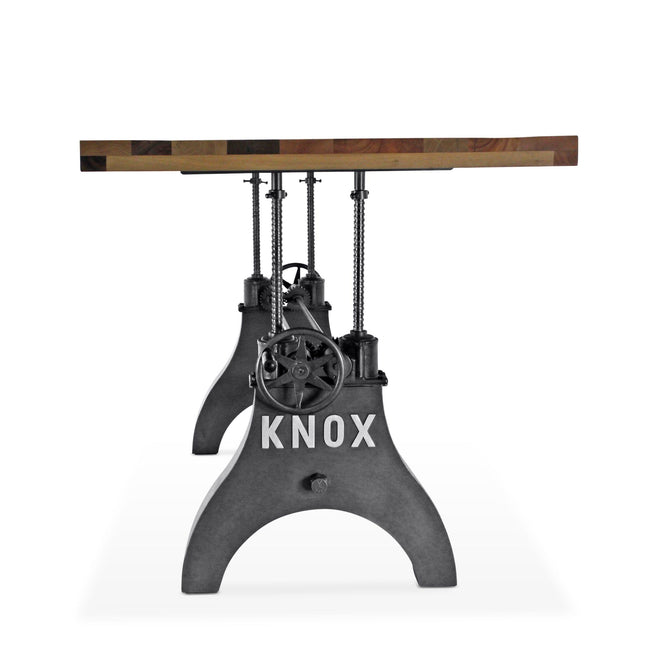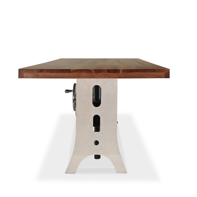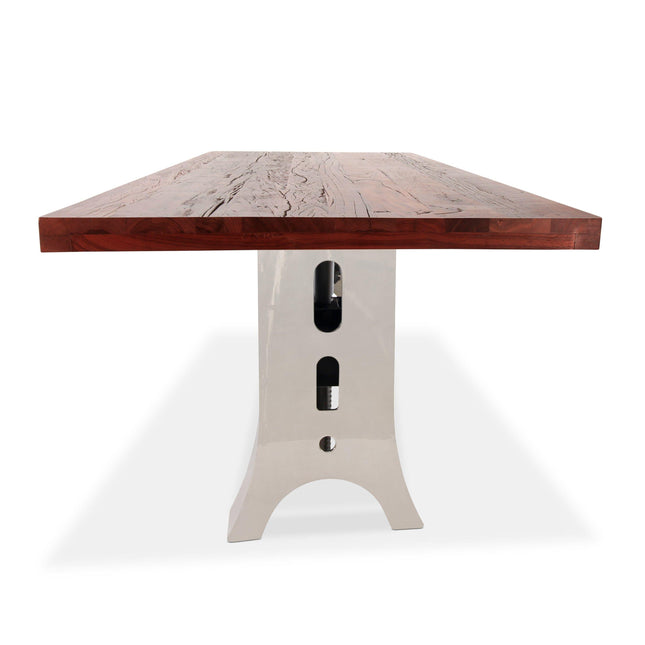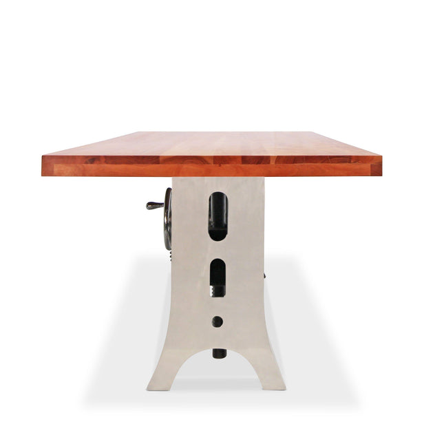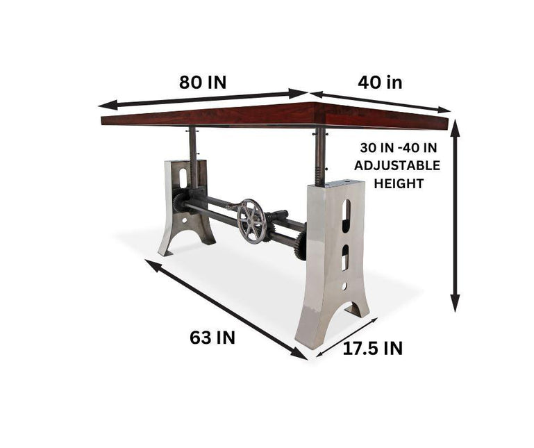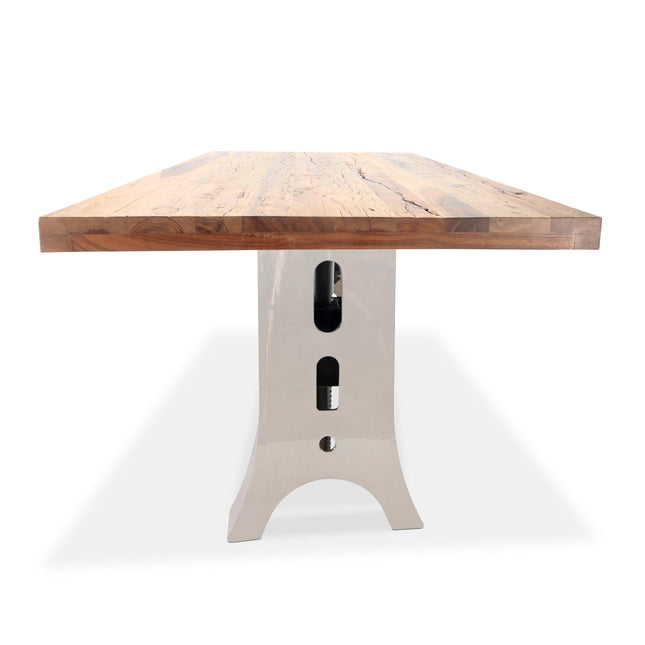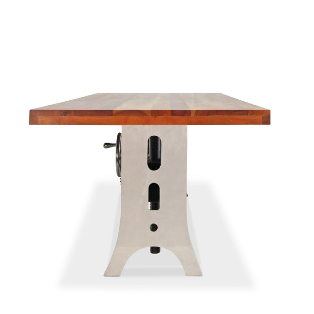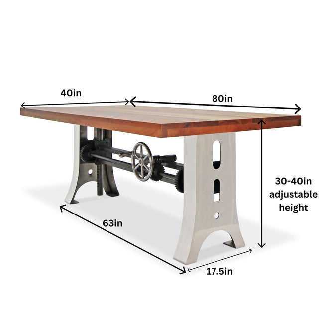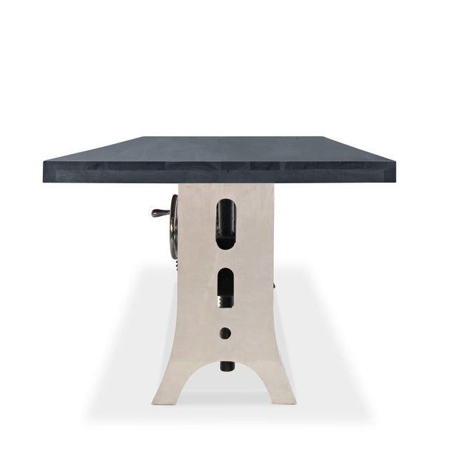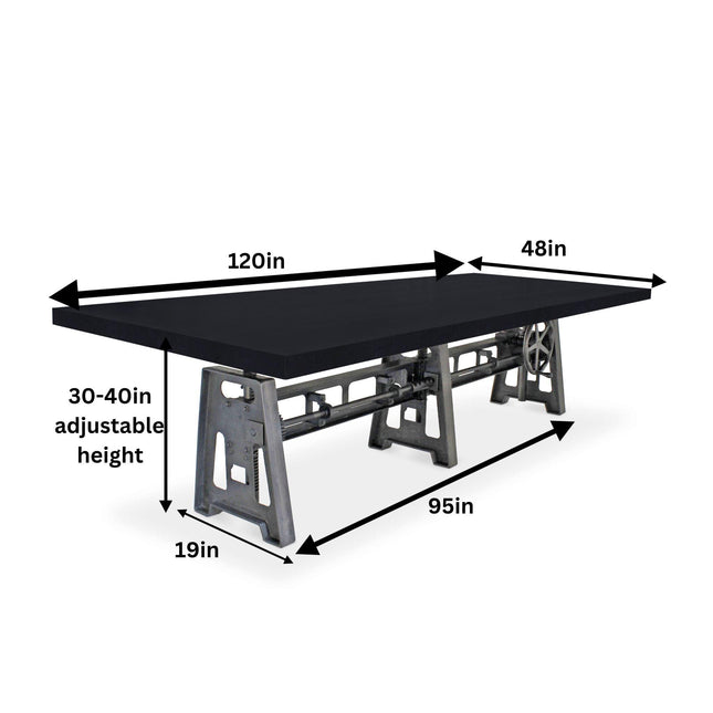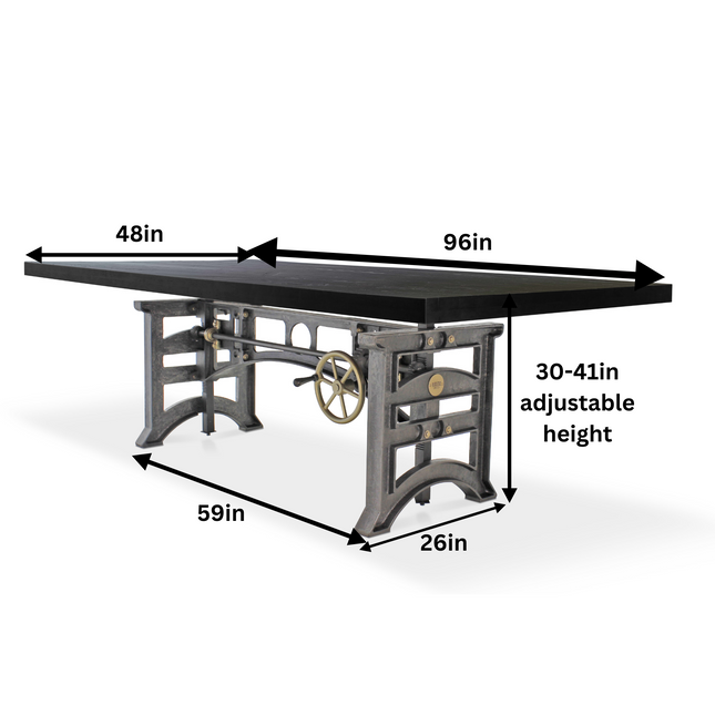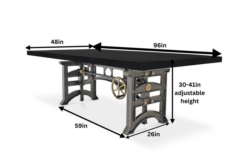 Our industrial dining collection emphasizes both bold form and practical functionality, with many tables featuring adjustable height cranks that allow you to customize the height to your exact needs, showcasing authentic industrial design elements.