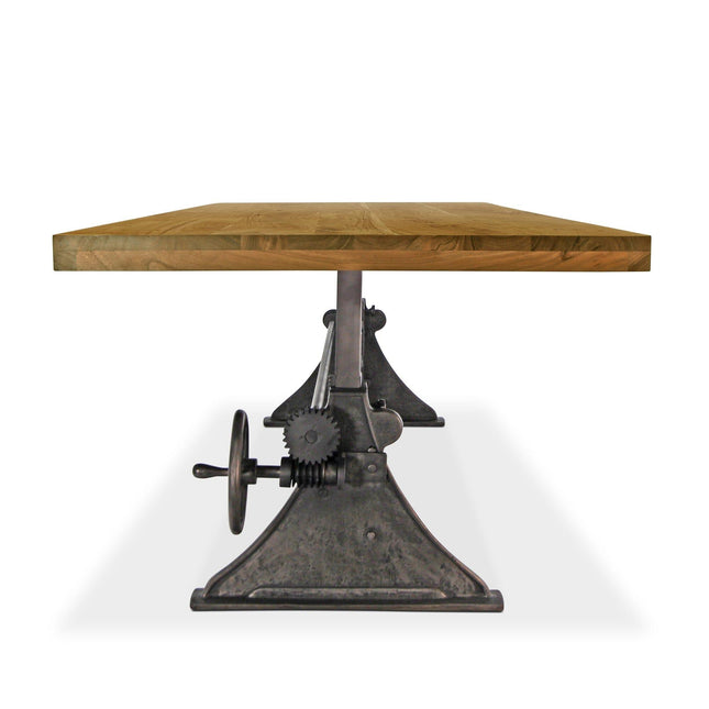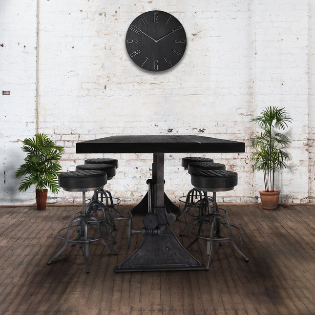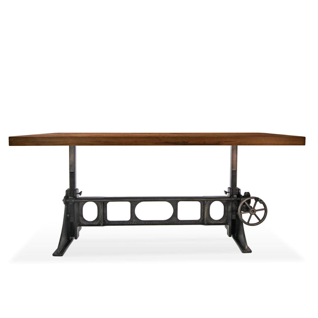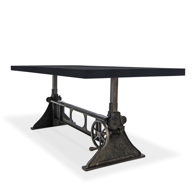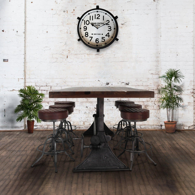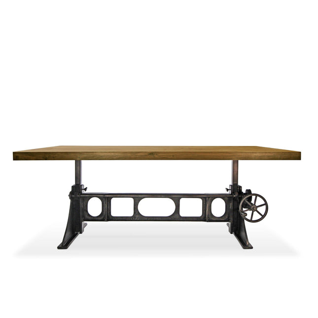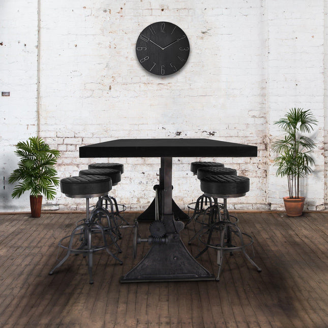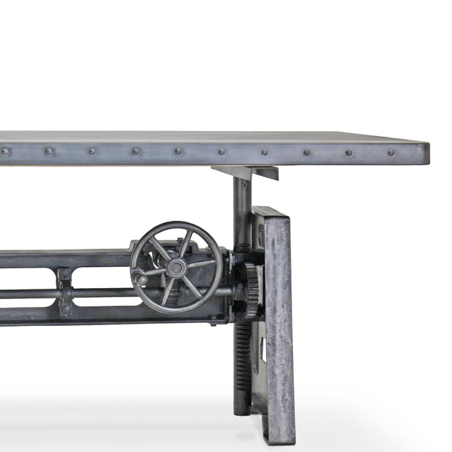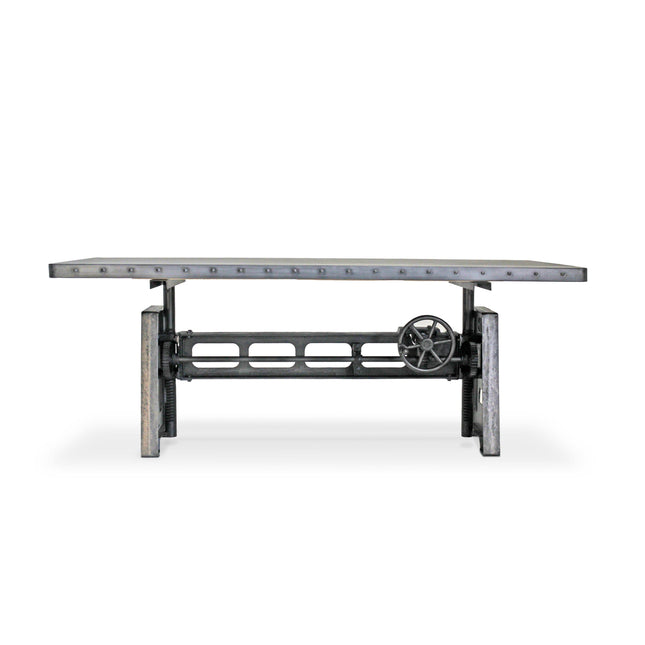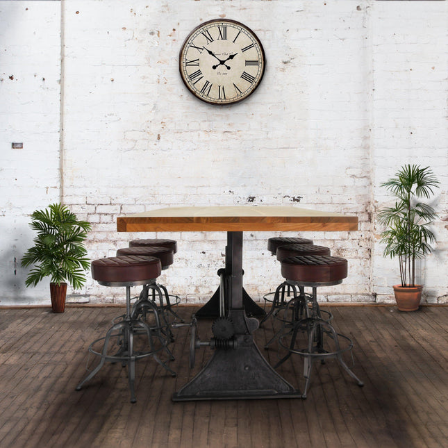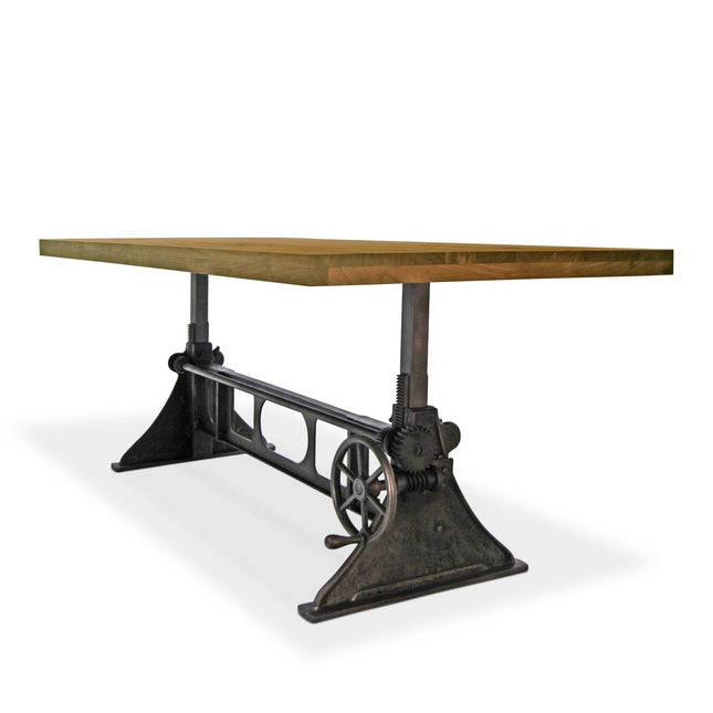 Our industrial dining collection emphasizes both bold form and practical functionality, with many tables featuring adjustable height cranks that allow you to customize the height to your exact needs, showcasing authentic industrial design elements.