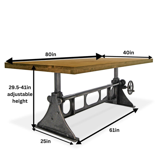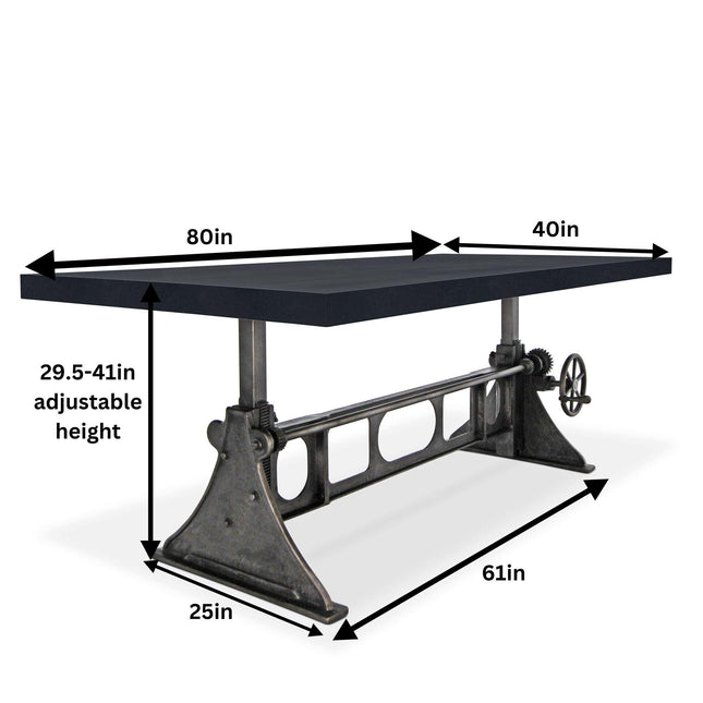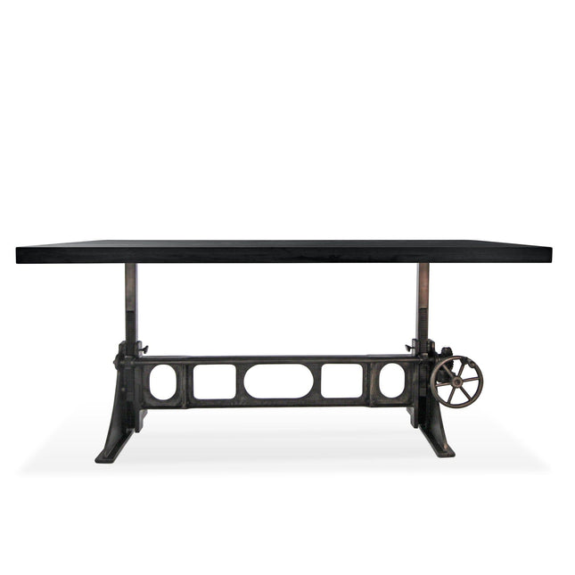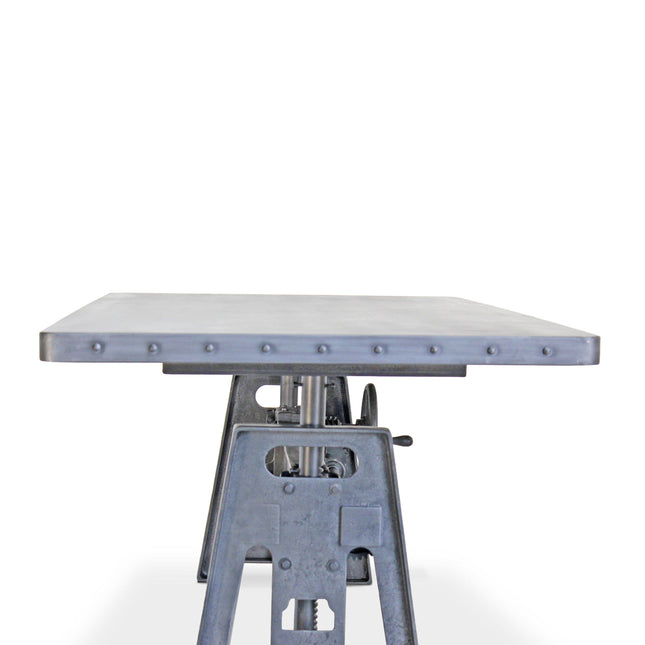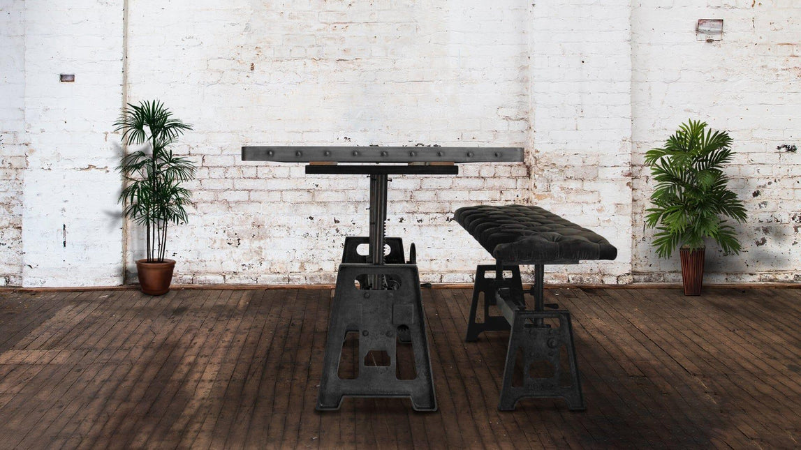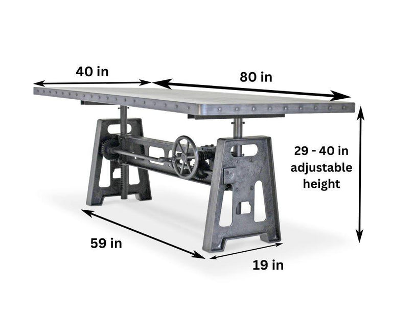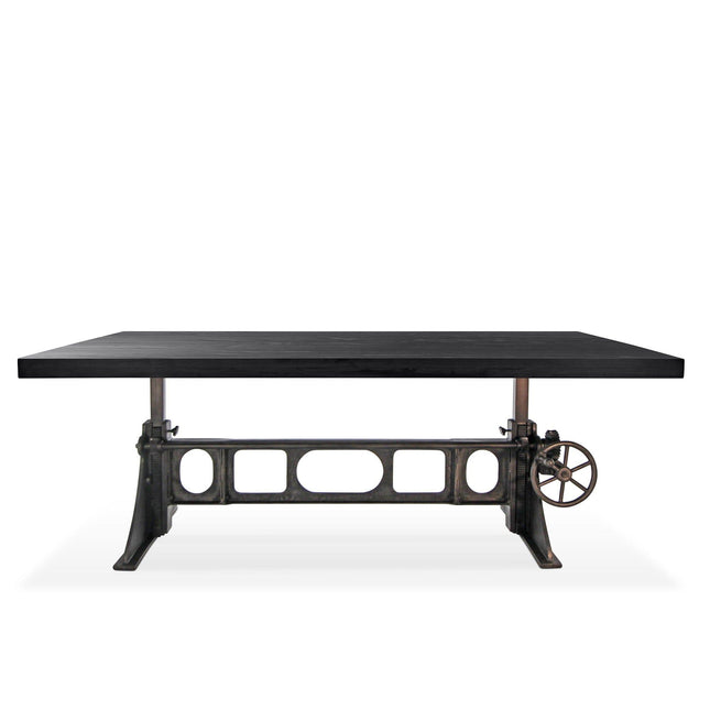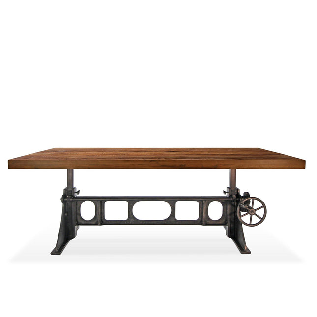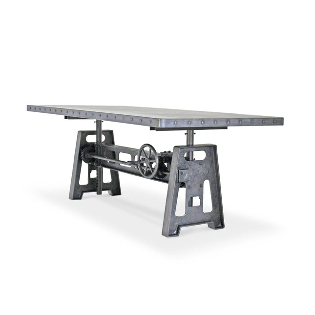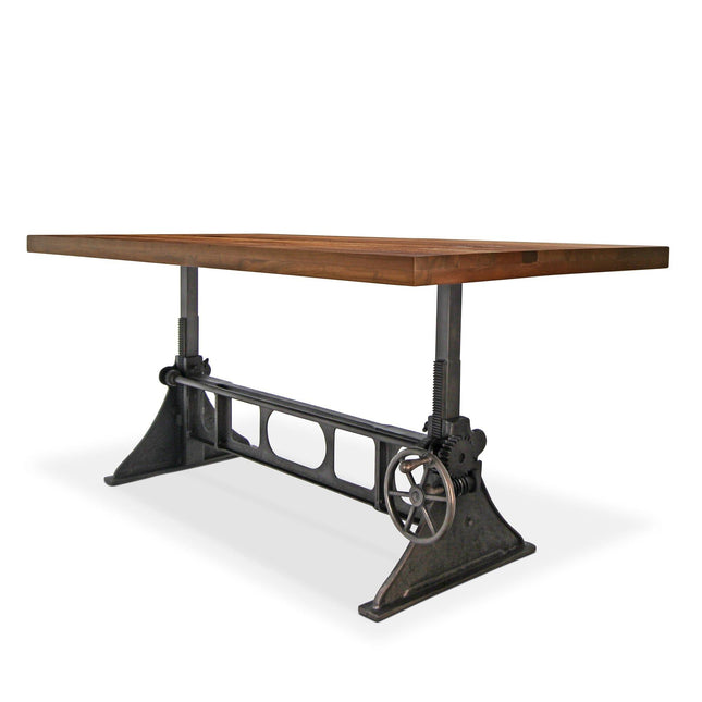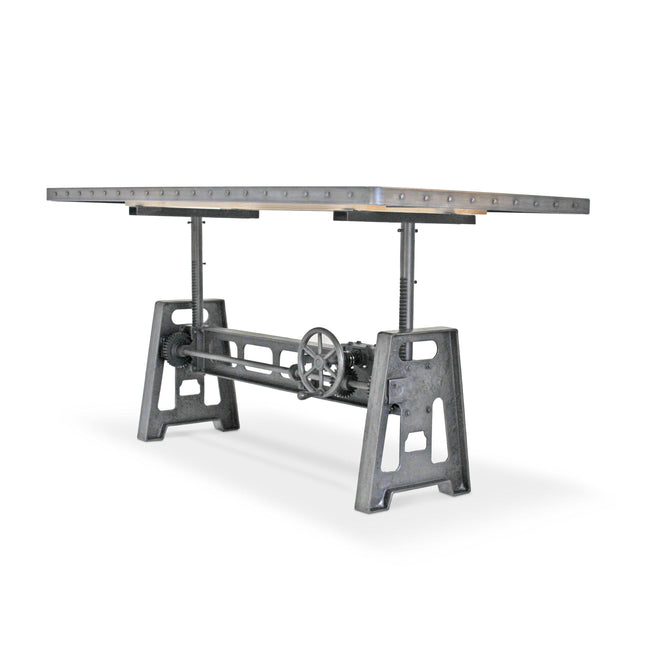 Our industrial dining collection emphasizes both bold form and practical functionality, with many tables featuring adjustable height cranks that allow you to customize the height to your exact needs, showcasing authentic industrial design elements.
