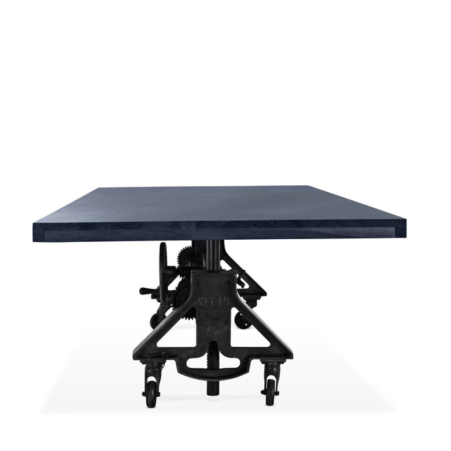 Established during the US Industrial Revolution, Otis Steel was a crucial part in Cleveland's manufacturing history from 1875 to 1942. Inspired by the distinctive industrial lines characteristic of the gantry pivots and furnace-ladle arms of the Otis metal-works factory, the muscular cast-iron and steel base provides a robust foundation for this handcrafted, adjustable-height industrial dining table or desk.