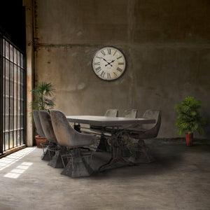 Inspired by the deep and iconic history of the ironclad ships, Rustic Deco is proud to offer this exclusive industrial dining chair, the Casemate Ironclad. With its stately iron finish, the all-metal base is handsomely constructed from high-gauge steel and cast iron and accented with domed rivets. Priced and sold in pairs.