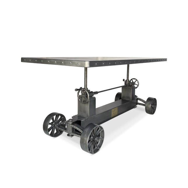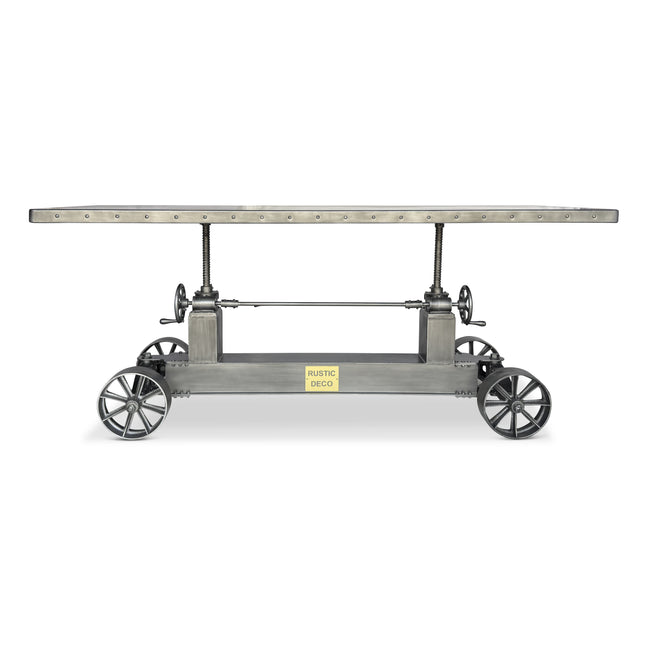 Designed by Rustic Deco to be sturdy and rugged enough for commercial restaurants and bars, the table's height can be easily and smoothly adjusted through a full 10-inch range (30-40 inches full height) - just by turning the manual hand crank.