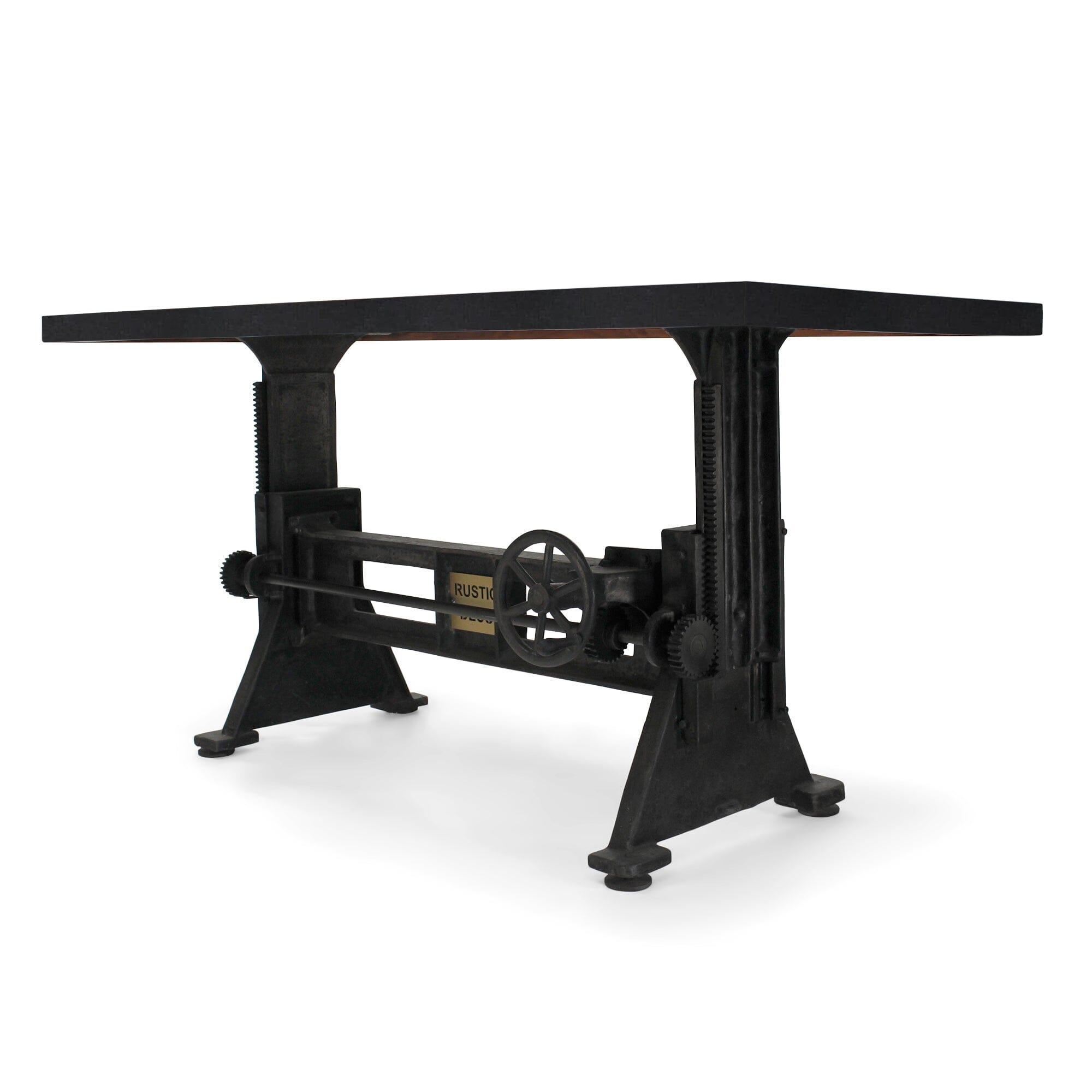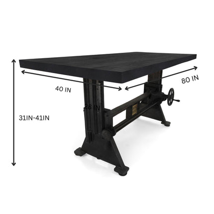 Craftsman Cast Iron Dining Table - Adjustable Base - Rustic Ebony