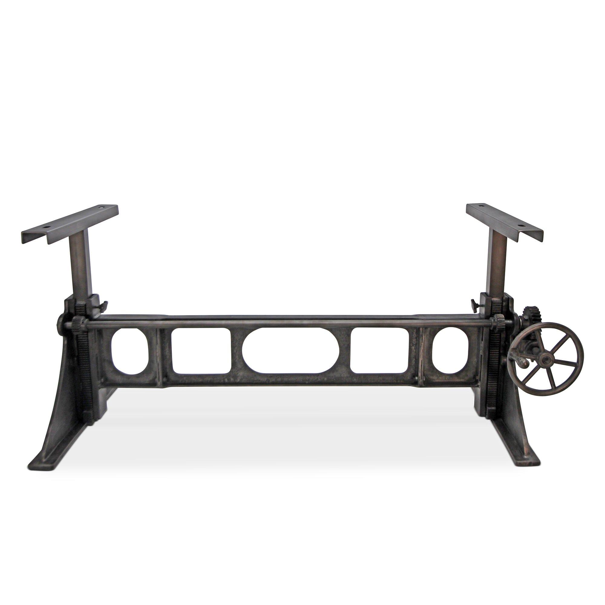 Each Delta table base is individually crafted from solid cast iron and high-quality steel. The blackish distressed-iron finish is amazing, further enhancing the table's mechanical character and appeal. When combined with your choice of top, this base creates a multi-functional eye-grabbing centerpiece that functions well as a dining table, kitchen island, pub table, executive desk, or neighbor-envying workbench.