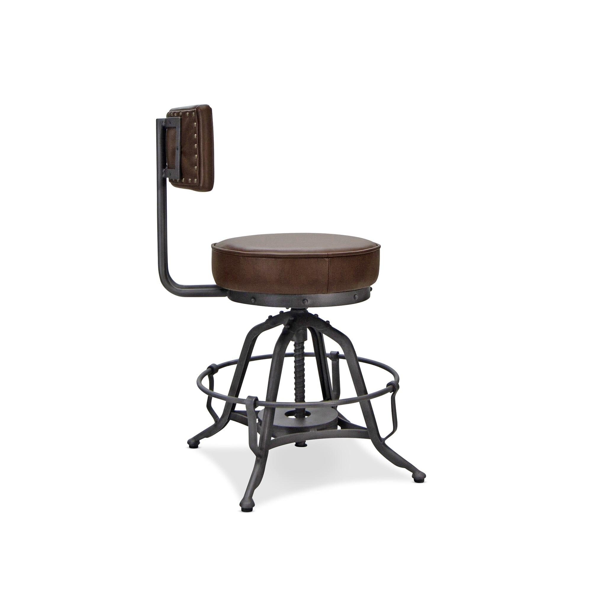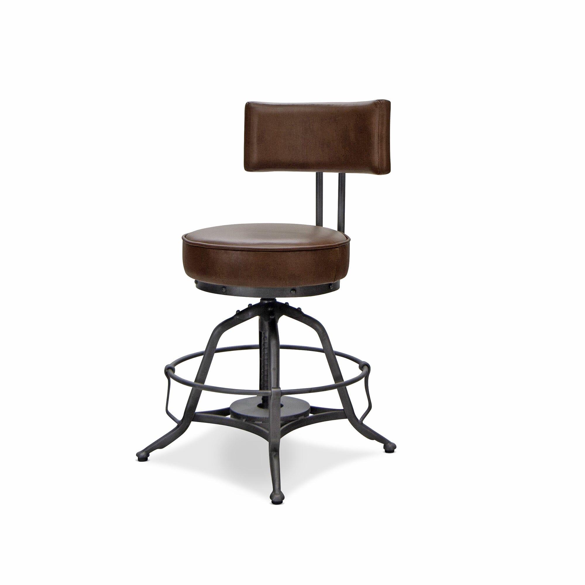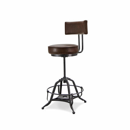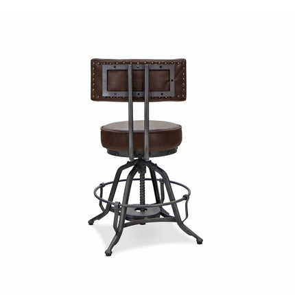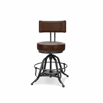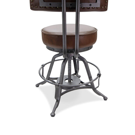 Industrial Adjustable Height Leather Dining Chair Stool - Brown Swivel Seat