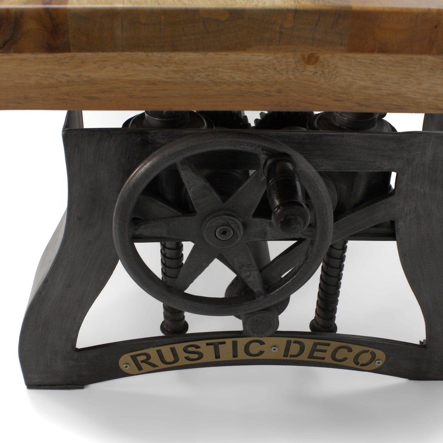 Each of these striking adjustable crank benches have been carefully handcrafted from solid hardwood, steel and cast iron. This unique bench adjusts from 19-28 inches (dining to high counter/low bar height). The reclaimed hardwood seat is 2.75" thick with a clear-sealed natural finish. We've added our trademark, "Rustic Deco", to the base plate, so you can be assured it is durable and well-built.