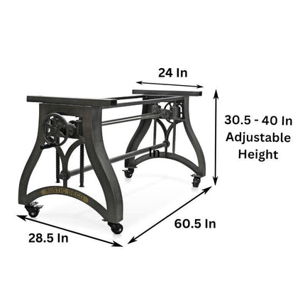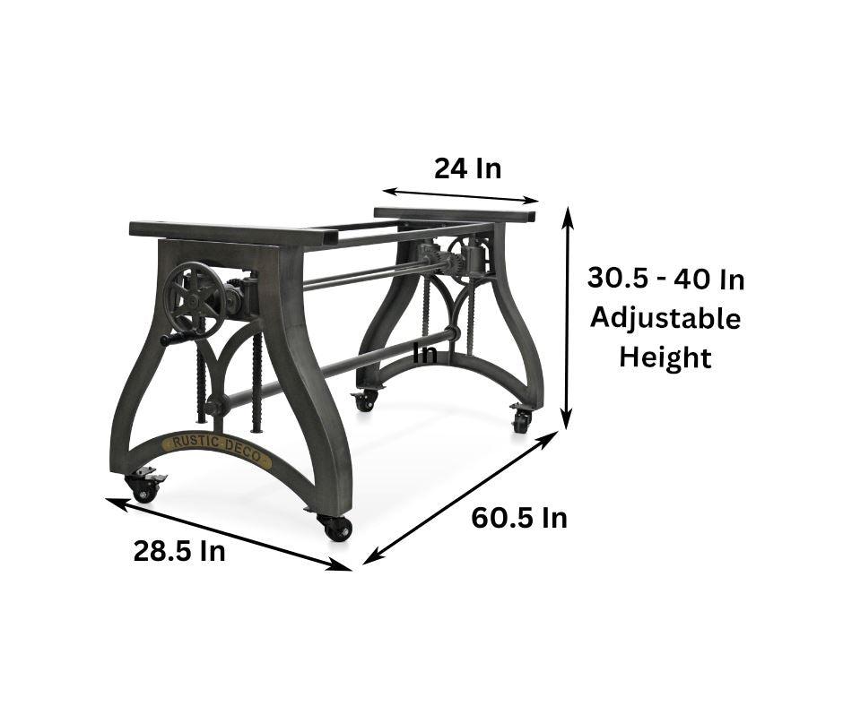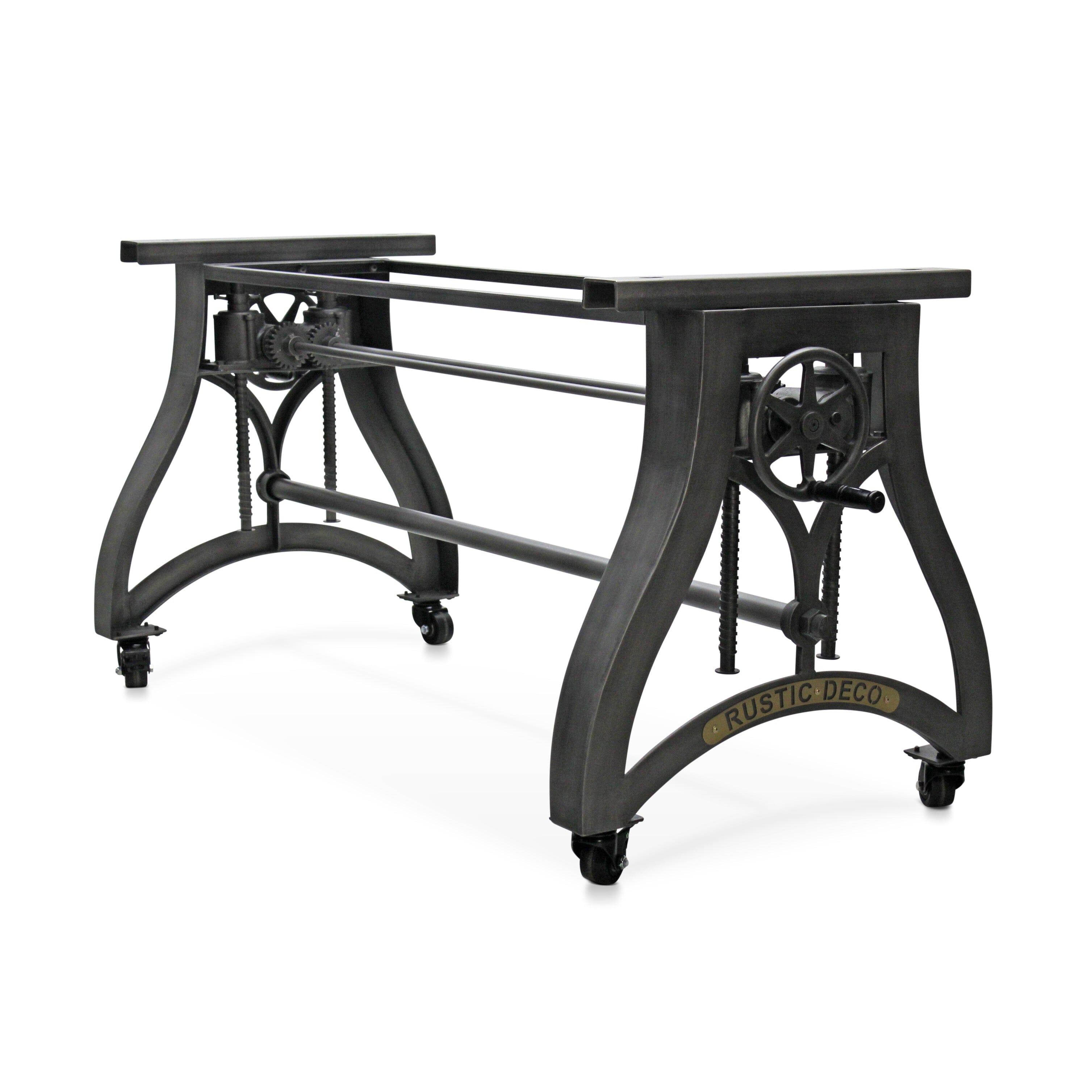 Crescent Industrial Dining Table Base - Adjustable Height - Casters - Cast Iron