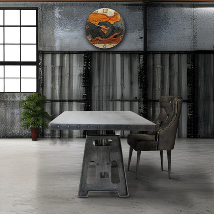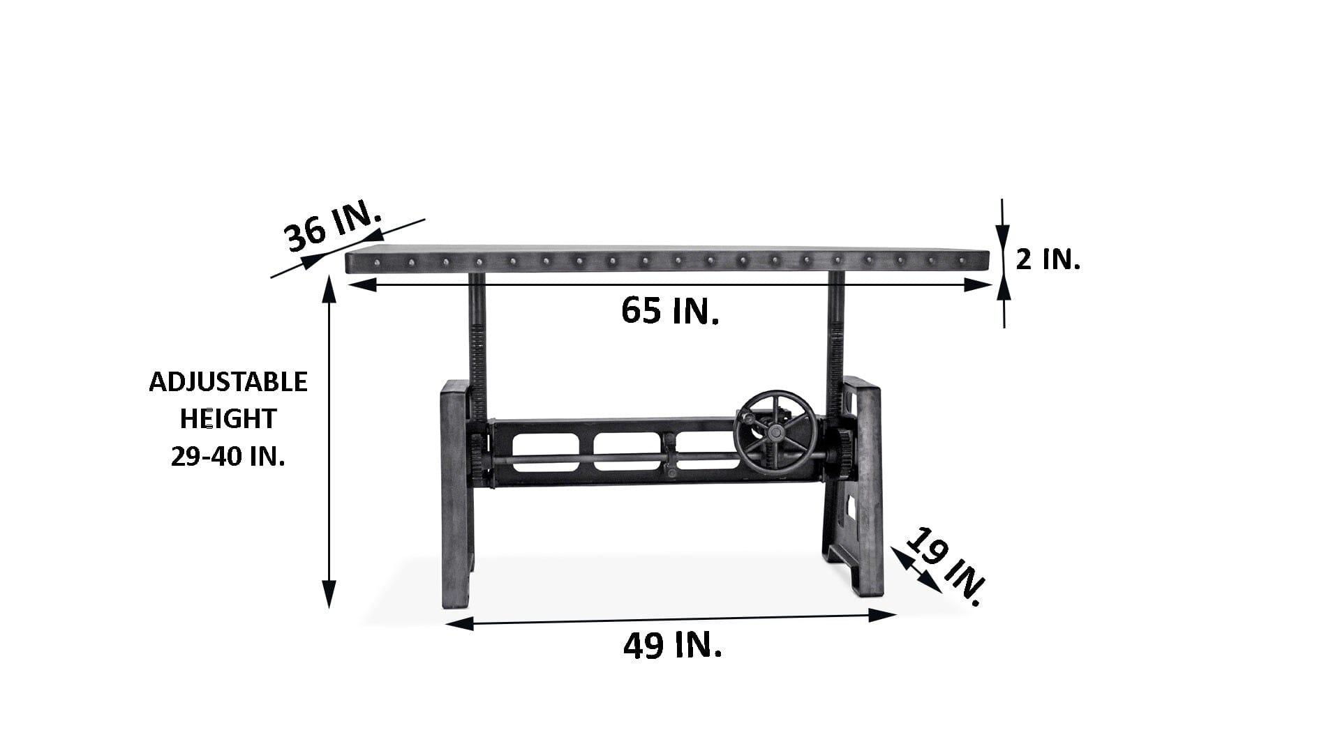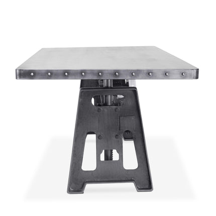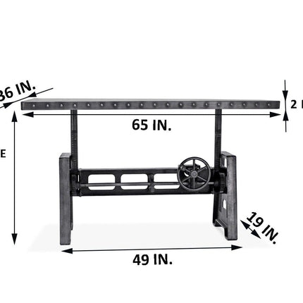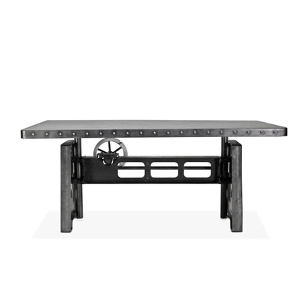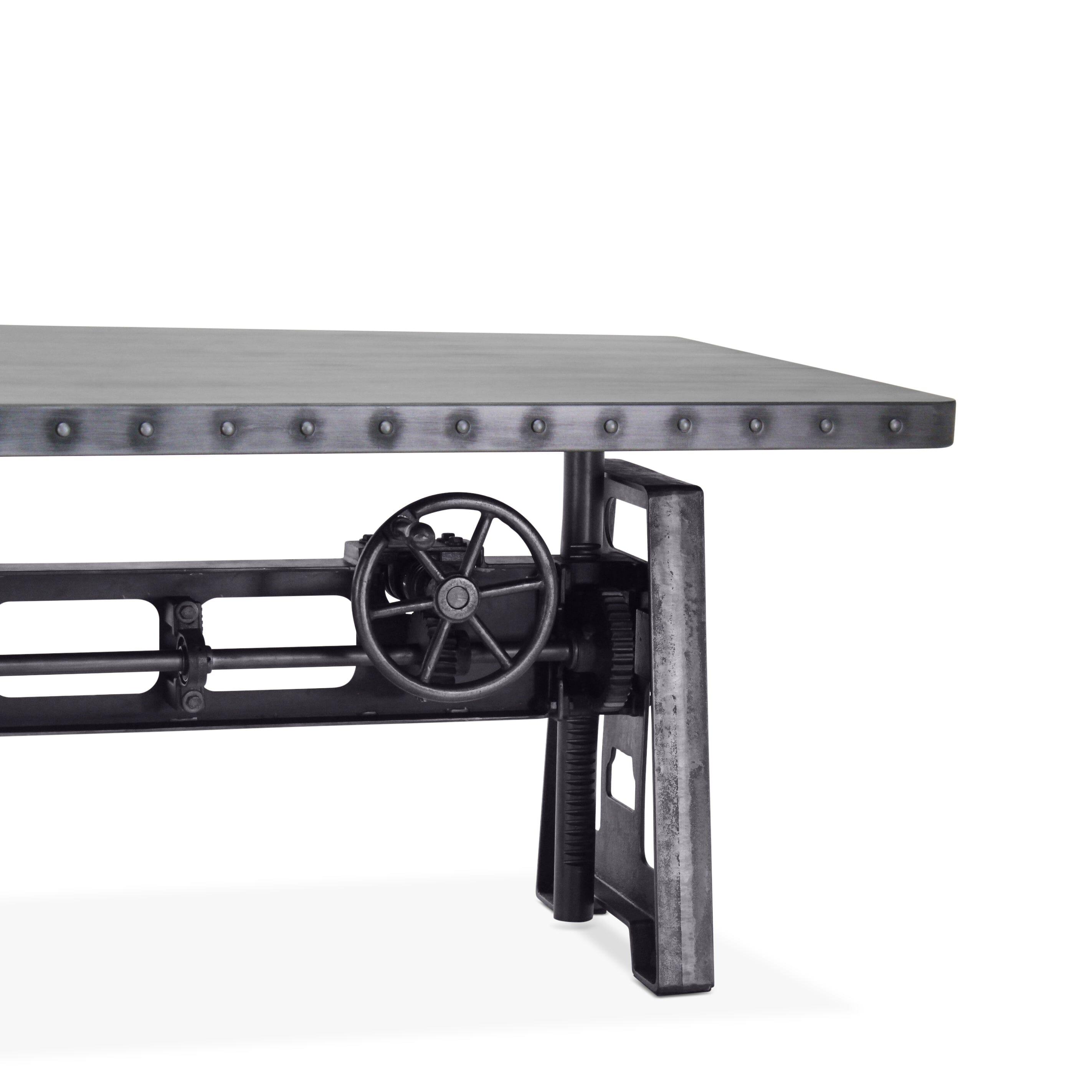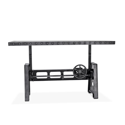 Industrial Writing Table Desk - Adjustable Height Iron Base - Steel Top