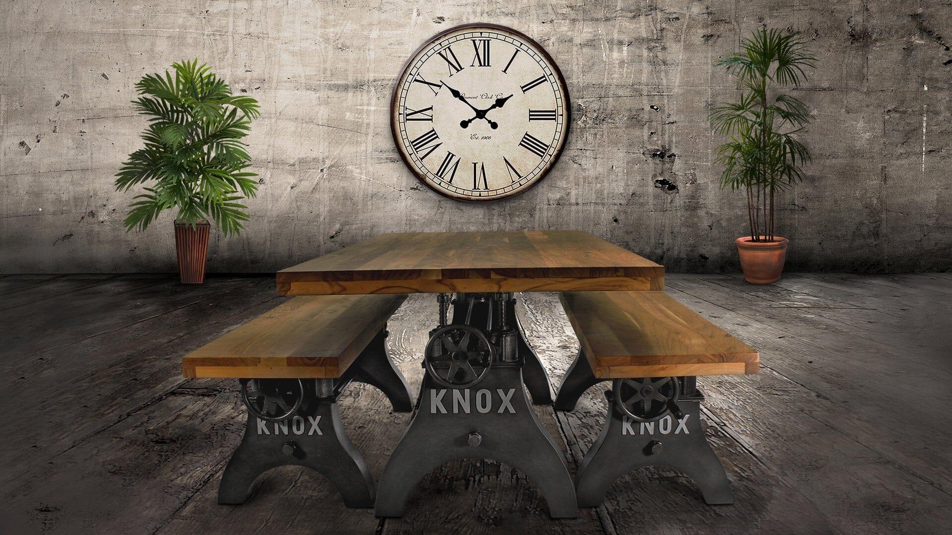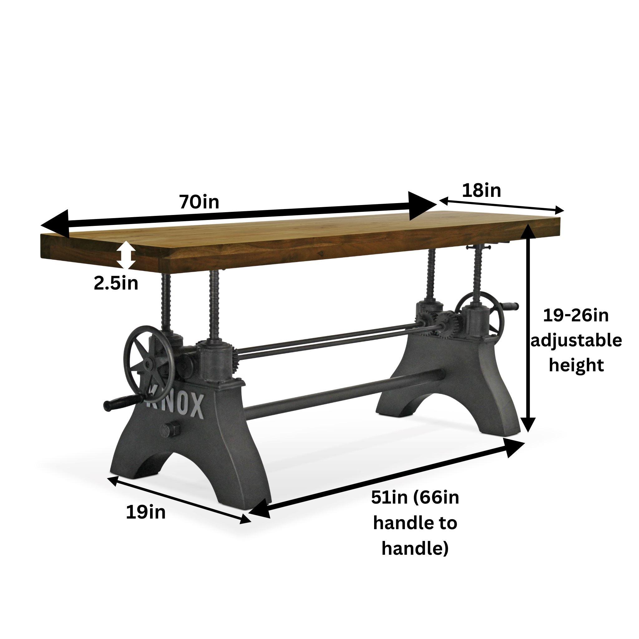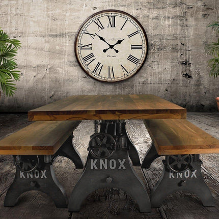 KNOX Adjustable Height Dining Bench - Steel Base - Natural Wood Seat
