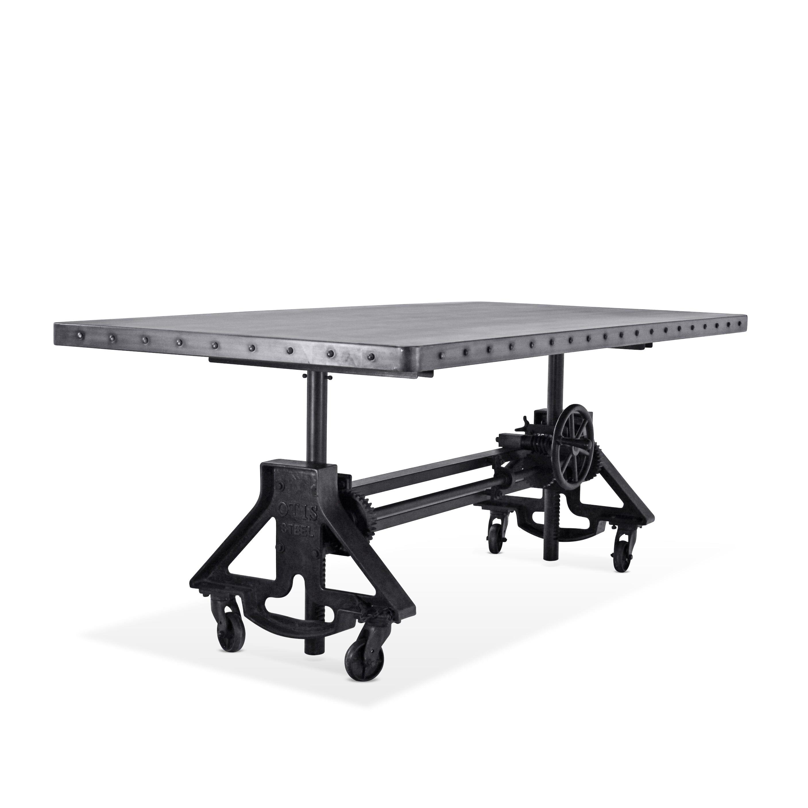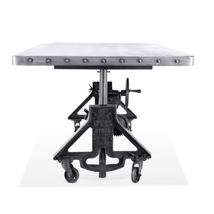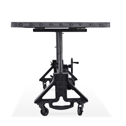 Established during the US Industrial Revolution, Otis Steel was a crucial part in Cleveland's manufacturing history from 1875 to 1942. Inspired by the distinctive industrial lines characteristic of the gantry pivots and furnace-ladle arms of the Otis metal-works factory, the muscular cast-iron base provides a robust foundation for this handcrafted, adjustable-height industrial dining table or desk. The tabletop moves smoothly through a range of 31 to 41 inches - dining to pub height - via a hand crank that we've introduced into the design. Features: