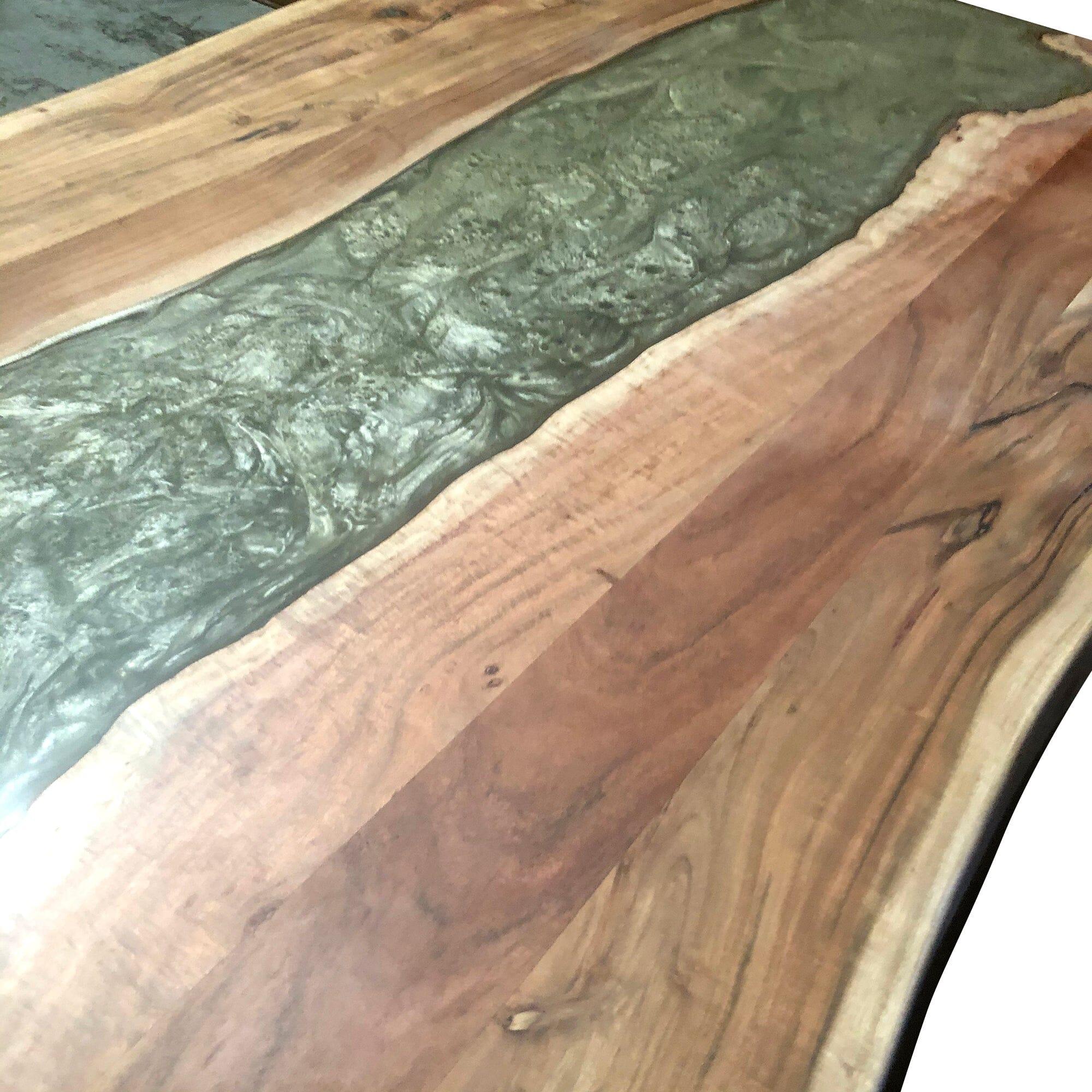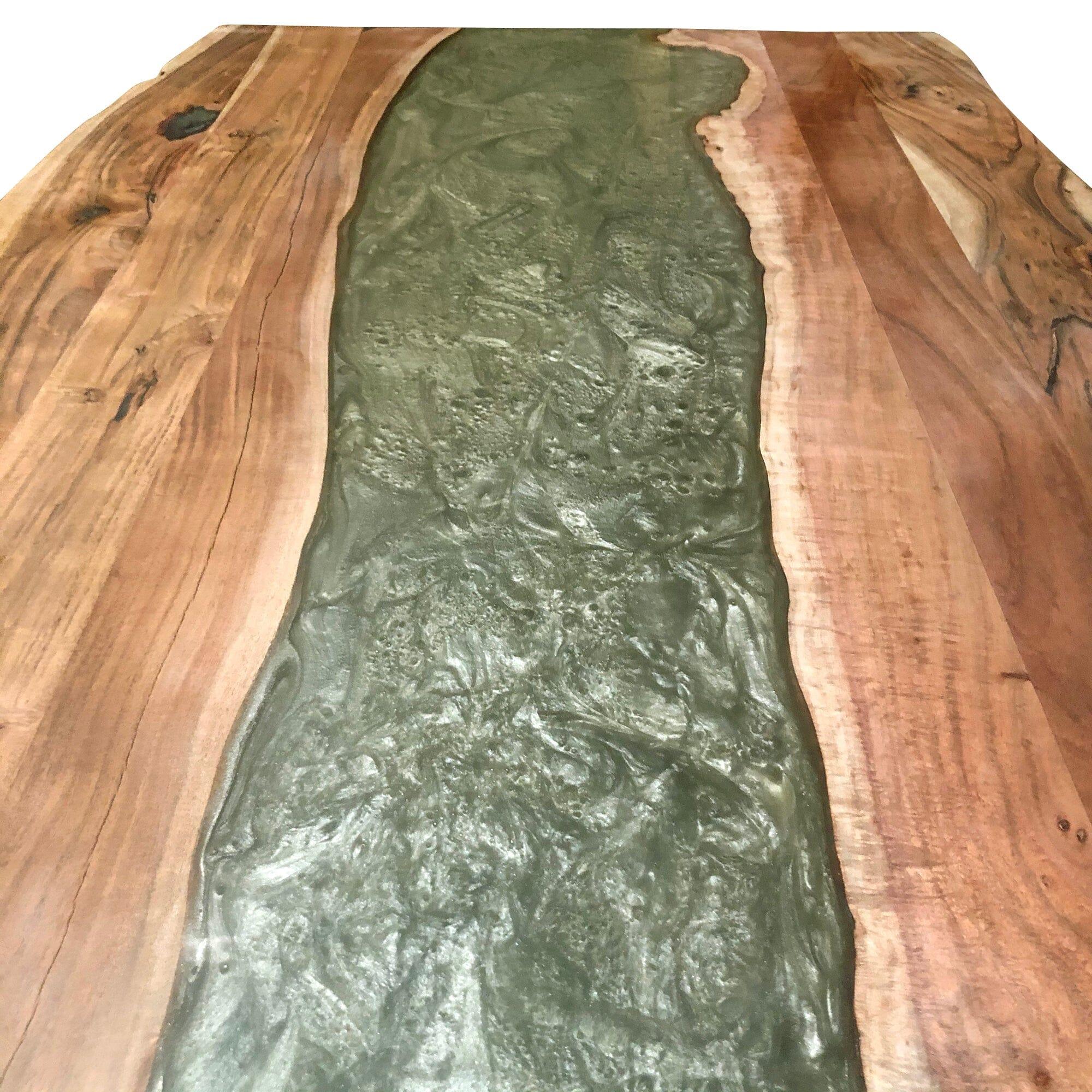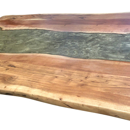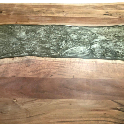 River Run Tabletop Epoxy Resin Live Edge Slab Dining Table Top - Grey 71"